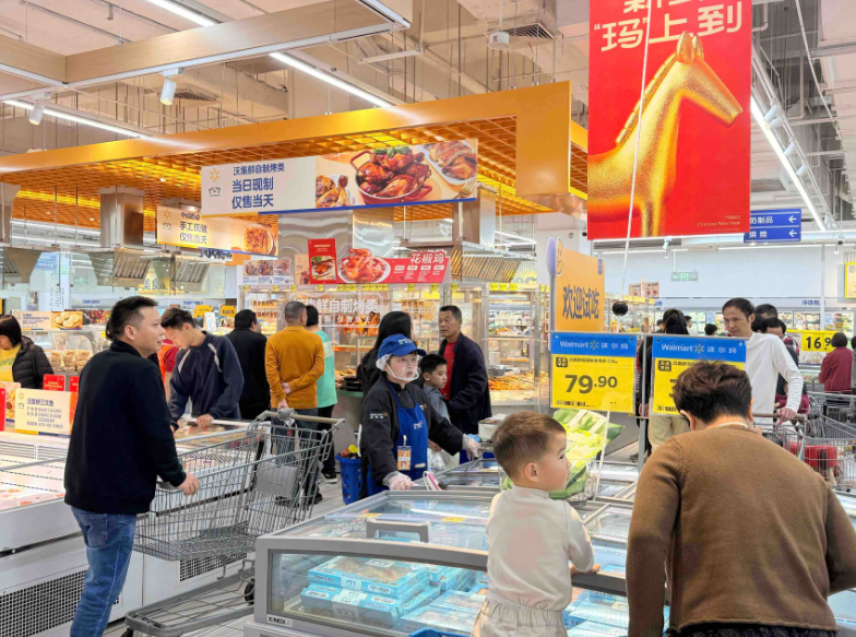 与此同时,沃尔玛、鑫鲜汇等连锁超市开启新春年货节,抢抓节前消费黄金期,打造主题鲜明的“年货一条街”,推出各式各样的年货,为市民提供丰富多样的年货选择与实惠福利。此外,各大商圈联动零售、餐饮商户开设年货促销专区,推出折扣、满减等多重优惠,进一步点燃市民消费热情。
