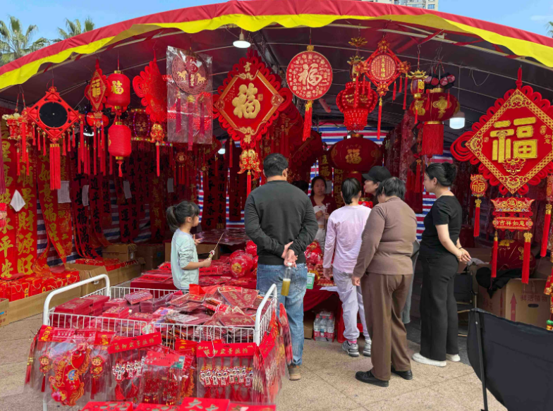 近日,“河通四海·源惠万家”河源市2026年新春消费季暨“广货行天下”系列活动正式启幕,拉开了全市新春促消费的序幕。记者走访发现,市区坚基购物中心、中骏世界城、翔丰商业广场等核心商圈,纷纷打造年货市集、迎春花市,汇聚传统年货、客家土特产、应节花卉及潮流商品,设置沉浸式打卡点,满足市民一站式采购需求。“来这里不仅能买到心仪的年货,还能看非遗、写春联,浓浓的年味扑面而来,特别有节日氛围。”正在选购年货的市民王伟说。