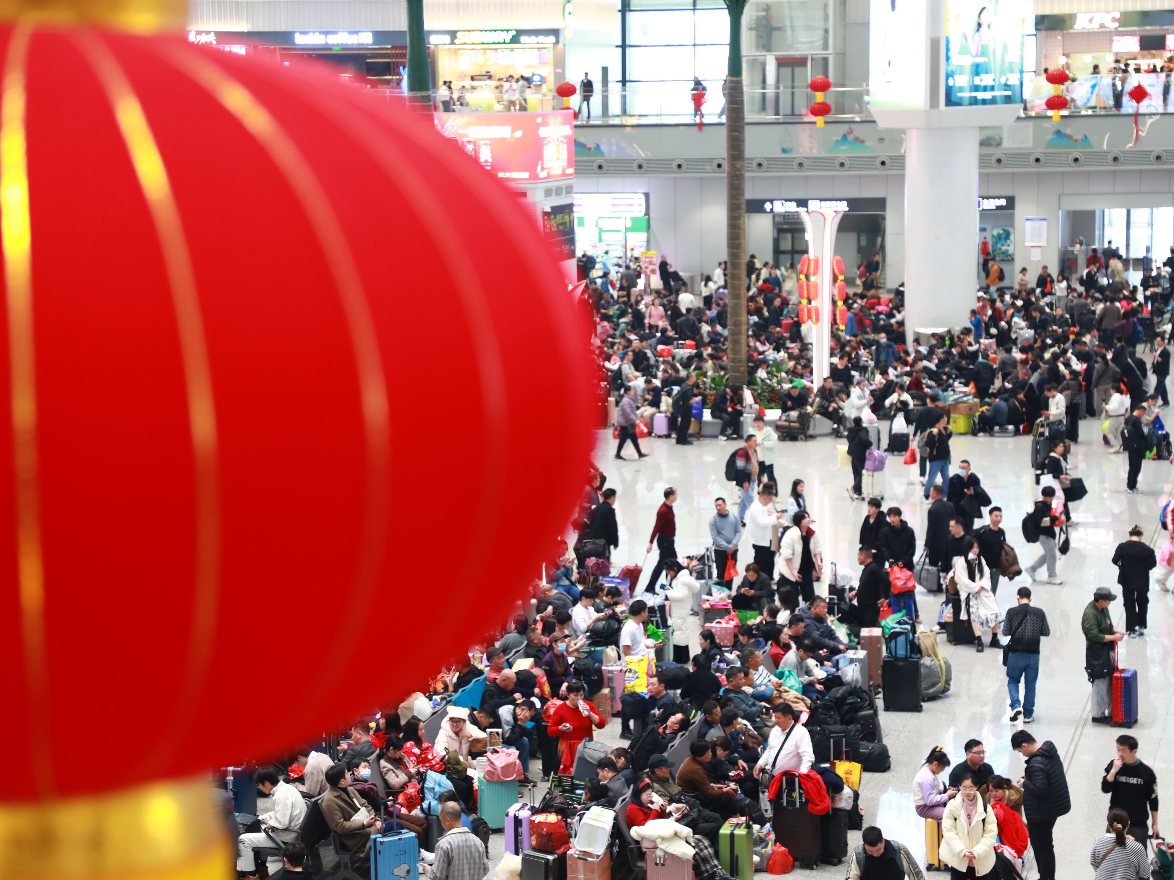 除夕当日,国铁广州局推出多项暖心举措,温暖旅客返乡路。深圳北、广州南、广州白云等车站在候车室内布置鲜花、灯笼、中国结,设置恭贺新春打卡点,营造浓厚新春氛围。广九、广州、长沙客运段将车厢精心装饰,挂灯笼、贴窗花、送福字,让旅途充满年味儿。